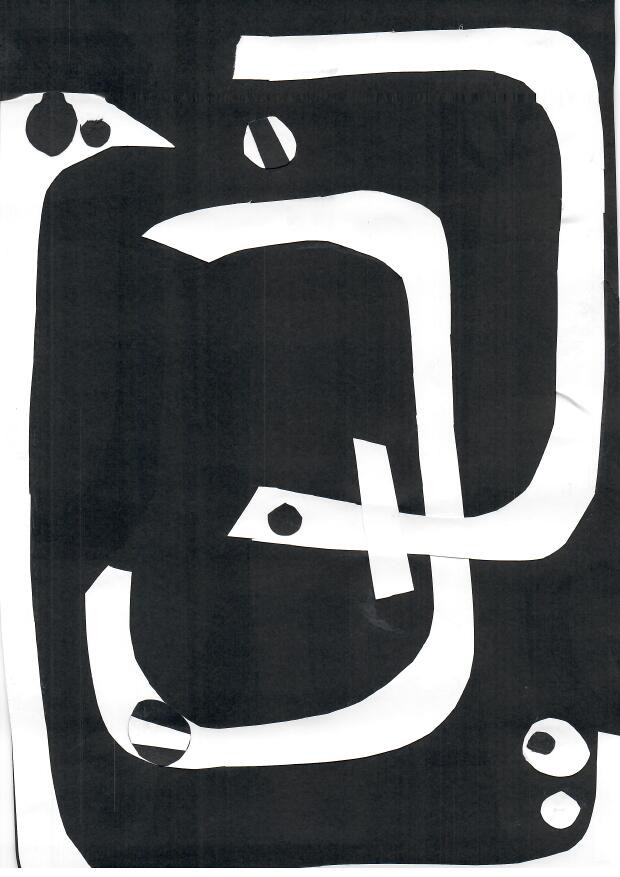 Schneide einfache Formen aus schwarzem und weißem Papier aus.