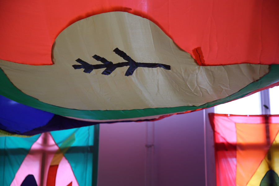 Bei Claudia laufen viele Fäden zusammen: Sie webt Wandteppich-Skulpturen, macht Performances und entwirft Kostüm- und Bühnenbild. Und vor allem arbeitet sie mit Stoff.